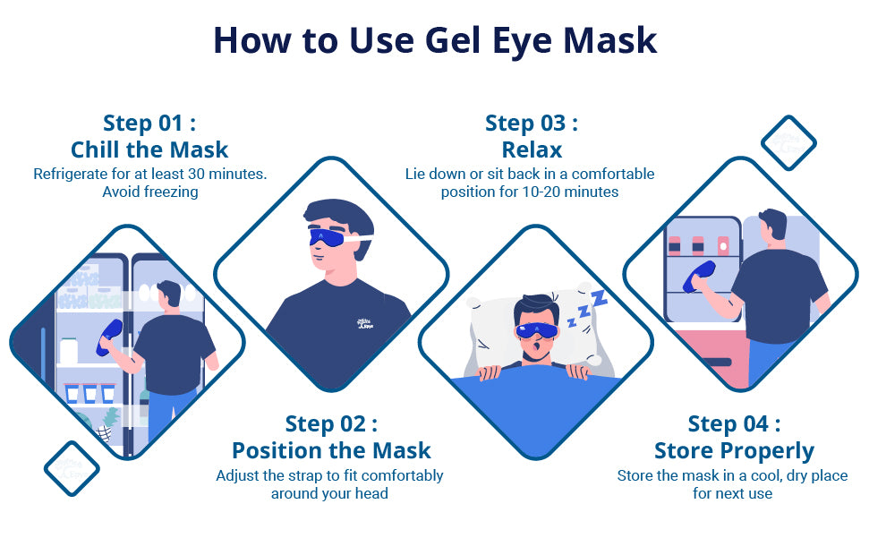 Place the gel eye mask in the refrigerator for at least 30 minutes before use.