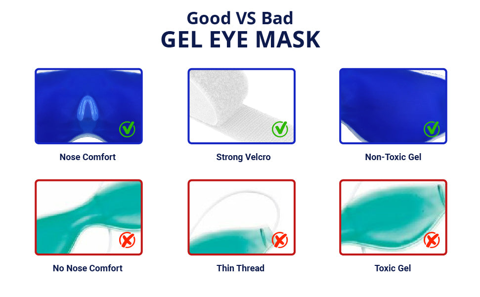 - The gel eye mask is made of and breathable to protect your sensitive skin, the inside is padded with non-toxic and tasteless gel with fda approved for your safety